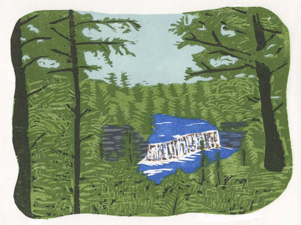 In accepting this woodcut Juror Richard Kooyman said "I was especially drawn to the region flavor in some of the work, specifically in Ben Bohnsack's 'Upper Tahquamenon'..."